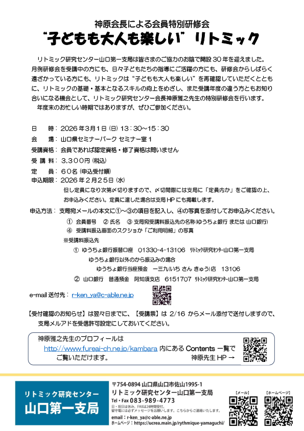 ⑥2026/3/1(日) 神原 雅之先生(リトミック研究センター会長)